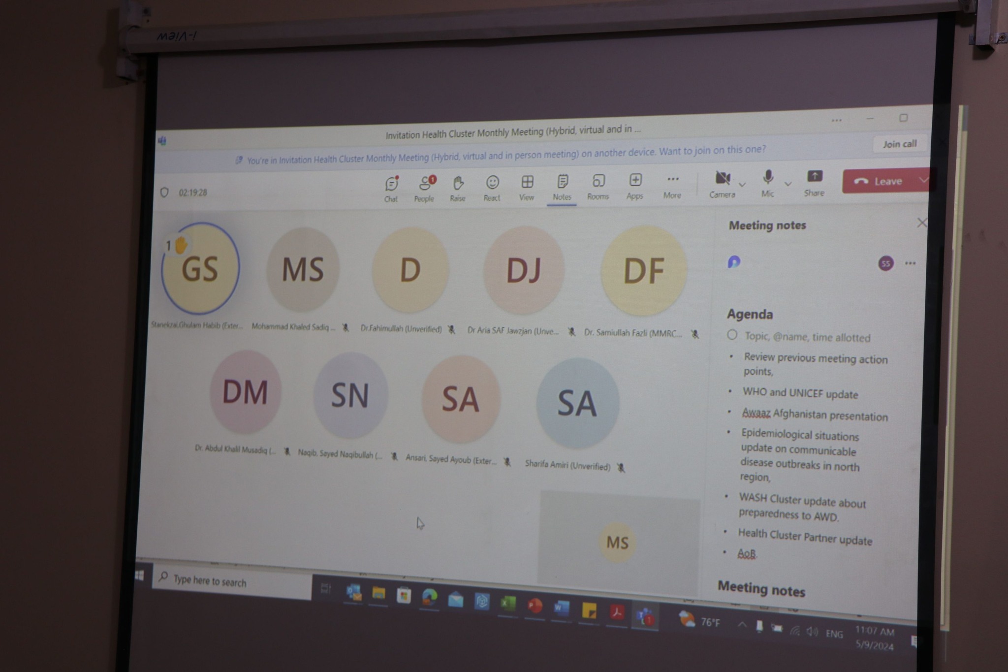 The meeting was initiated by the lead of WHO team members with the participation of the national and international NGOs who work in the health sector.